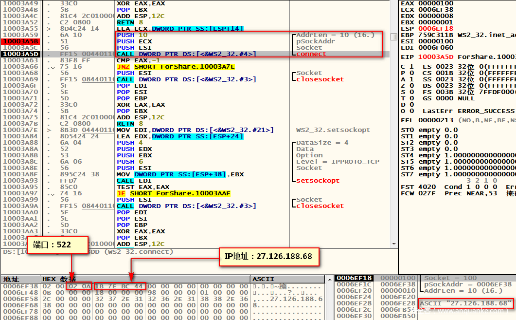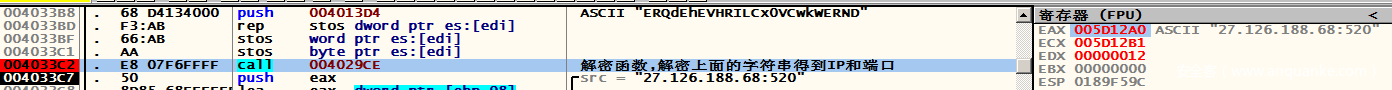 远控线程3的连接,服务器地址是加密的,解密后是27.126.188.68:520