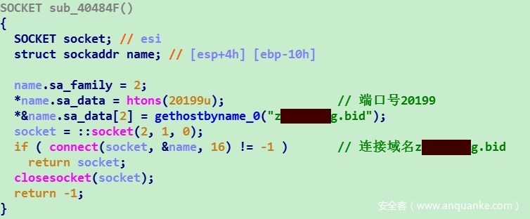 远控线程2的远程连接c&c 地址(z*******g.bid)端口是20199