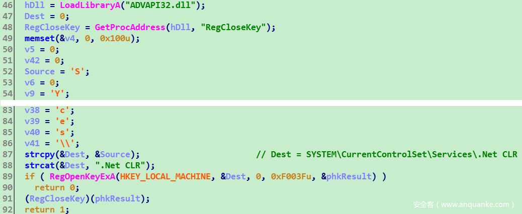 过CRC检测.exe程序根据注册表项SYSTEM\CurrentControlSet\Services\.Net CLR是否存在,判断程序是否第一次运行,首次运行会执行不同流程。