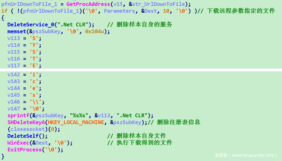 由于首次运行时注册了服务,所以样本作为服务二次启动的时候就会进入另一个流程。