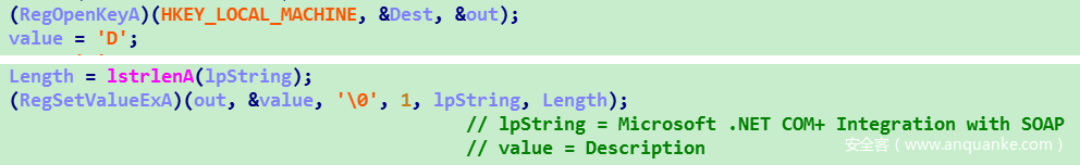 修改服务描述信息为:Microsoft .NET COM+ Integration with SOAP以进一步迷惑用户。