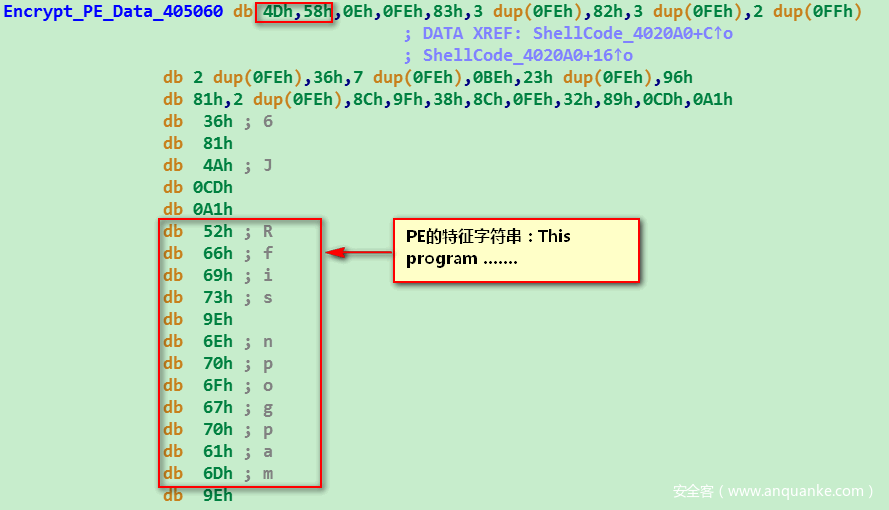 木马作者加密木马程序后,把加密数据作为全局变量存储在防封插件.exe程序的全局数据区。