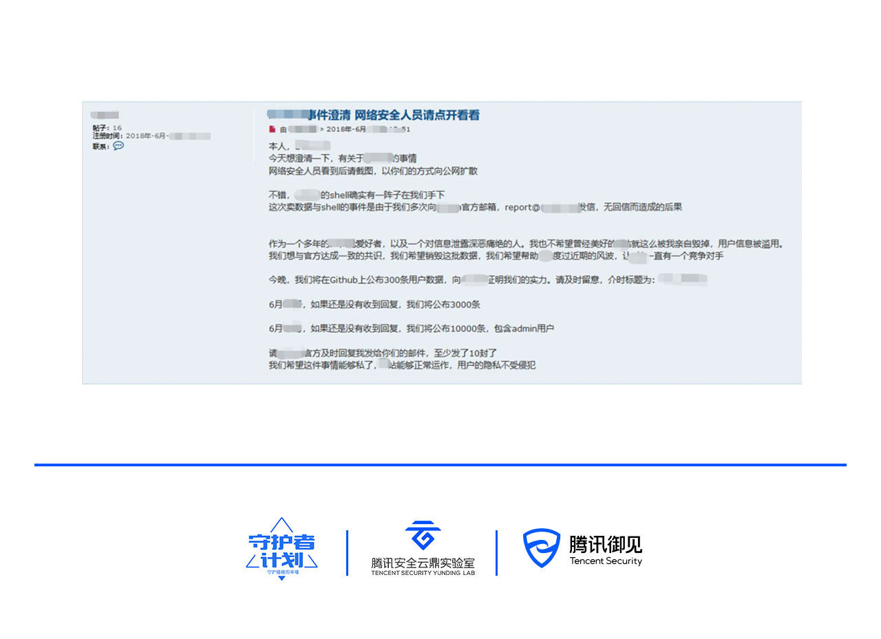 1、2018年6月,有人宣布入侵并获取了某视频网站近千万用户数据,并以此进行勒索;