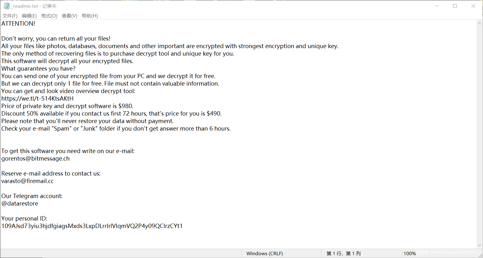 最近半年确实没有发现这款勒索病毒的最新变种了,取而代之的是另一款新型的勒索病毒REvil/Sodinokibi,而且这款勒索病毒全版本的解密工具也已经公布了