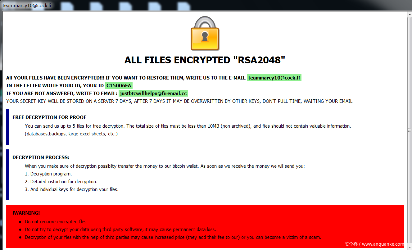 全球这些主流的勒索病毒笔者都曾详细跟踪并研究过,相关的报告可以查看之前的文章,2019年下半年又出现了一些新型的勒索病毒,比方NEMTY勒索病毒、EvaRichter(GermanWiper)勒索病毒等,这几款新型的勒索病毒主要在国外比较流行,目前发现的大部分流行的勒索病毒暂时无法解密,重点在防御,针对勒索病毒的一般防范措施,笔者总结了以下几条建议,仅供参考: