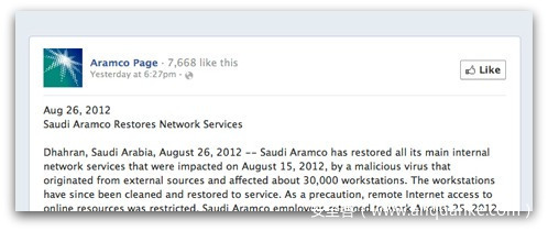 (2012年沙特国家石油公司发文称遭破坏性攻击)