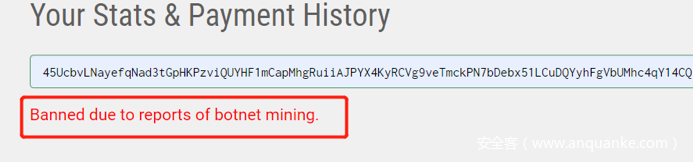 目前,由于钱包地址被多次举报为僵尸网络,在矿池官网已经无法查看钱包详细信息,钱包也已失效,如图4-8所示。