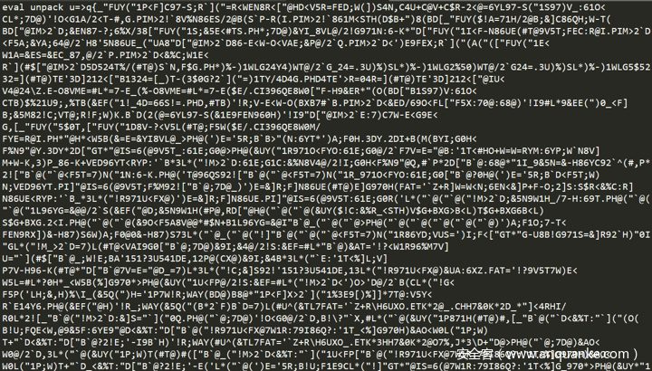 执行一段经过base64编码的代码,解码之后发现代码又采用了另外一种方式混淆。图5-1是run脚本执行编码的后门,下面是详细分析: