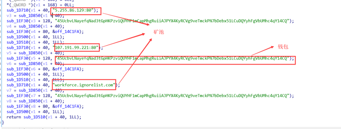 根据b目录中的IRCBot遗留的主控服务器IP,在挖矿程序<anacron>中,也发现了与主控服务器在同一个C段的矿池。除此之外,还存在其他两个矿池。挖矿病毒中发现三个矿池分别是5.255.86.129:80 (荷兰)、107.191.99.221:80(美国)和workforce.ignorelist.com,截止分析之前所有矿池均存活,幸运的是找到矿池的同时也发现了攻击者的钱包地址,如图4-7所示。