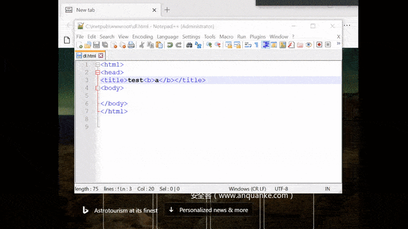 如果访问https://ntp.msn.com/compass/antp?locale=qab&dsp=1&sp=qabzz,我们会看到无法正确加载的一个NTP页面,这一点在漏洞利用场景中比较关键。正常的NTP页面为https://ntp.msn.com/edge/ntp?locale=en&dsp=1&sp=Bing,大多数情况下,该页面在加载时会使用到某种缓存机制。