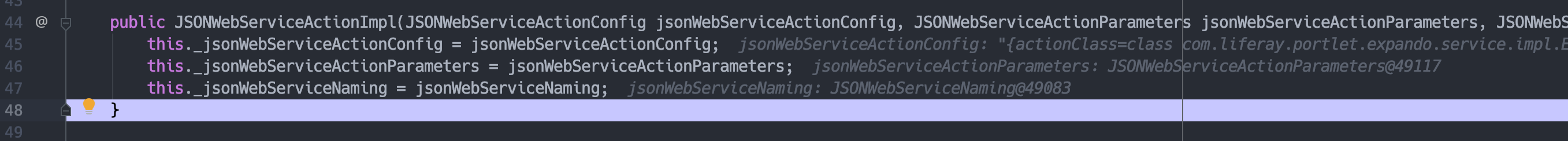 然后回到getJSONWebServiceAction,实例化JSONWebServiceActionImpl进行赋值。