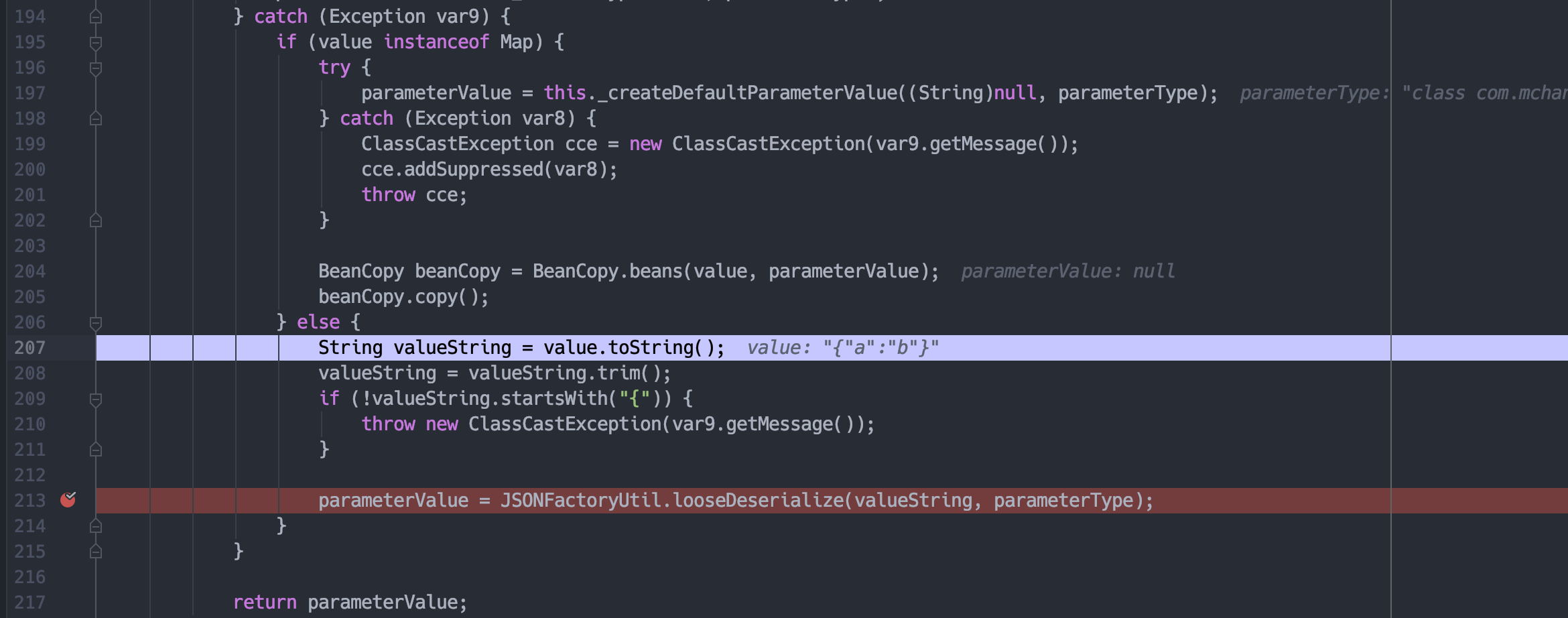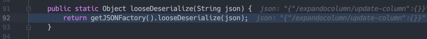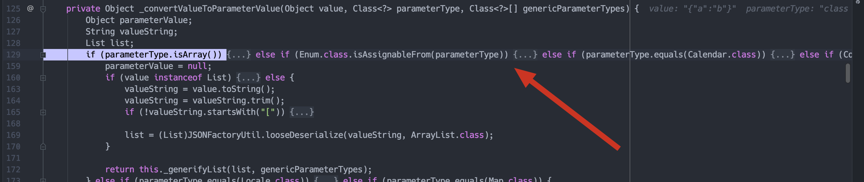 如果value是以{开头,就会进入下面的JSONFactoryUtil.looseDeserialize,传入parameterType和value。