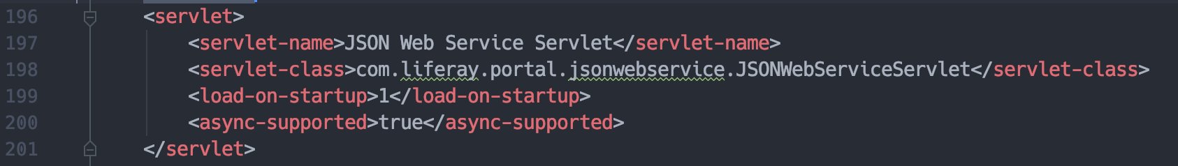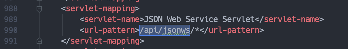 首先对路由的调用进行分析,我们看到web.xml,url-pattern为/api/jsonws/*,对应的servlet-name如下。