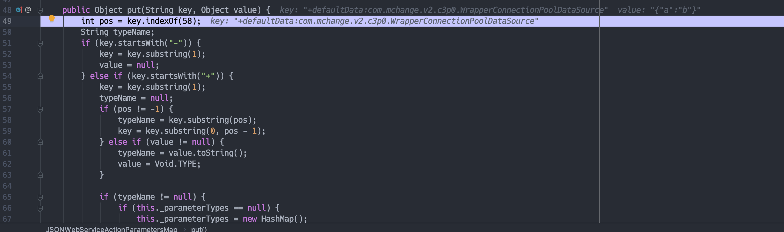 这里会将key和value取出来put到_jsonWebServiceActionParameters这个map里,不过在调用put函数是,还会进一步处理key。