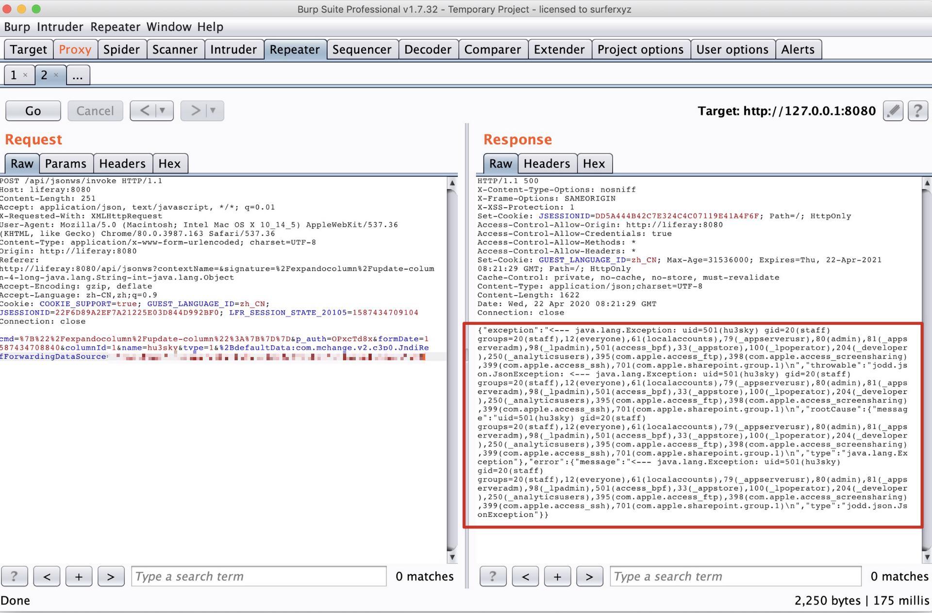 2020年03月20日,Code White发现了影响Liferay Portal版本6.1、6.2、7.0、7.1和7.2的多个关键级别的JSON反序列化漏洞。它们允许通过JSON web服务API执行未经身份验证的远程代码。修复的Liferay Portal版本有6.2 GA6、7.0 GA7、7.1 GA4和7.2 GA2。