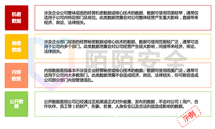 各公司在开展数据安全时,都不可避免的要先进行数据分类分级。面对迭代快速的业务及其海量数据时,尤其互联网行业没有成熟的分类分级标准,这就令很多从业者无从下手。那么我们到底应该如何进行分类分级呢?首先,大家应该对公司业务架构有个大体了解,按照业务架构大致明确下数据的分类,比如用户数据、业务数据;再思考公司的哪些数据是重要的。这里数据的重要性一方面是考虑监管,另一方面是考虑公司的业务。比如某某数据泄露了,会给公司带来什么样的影响,对公司的影响又会分为经济影响、舆论影响、法律影响等(见图3)。