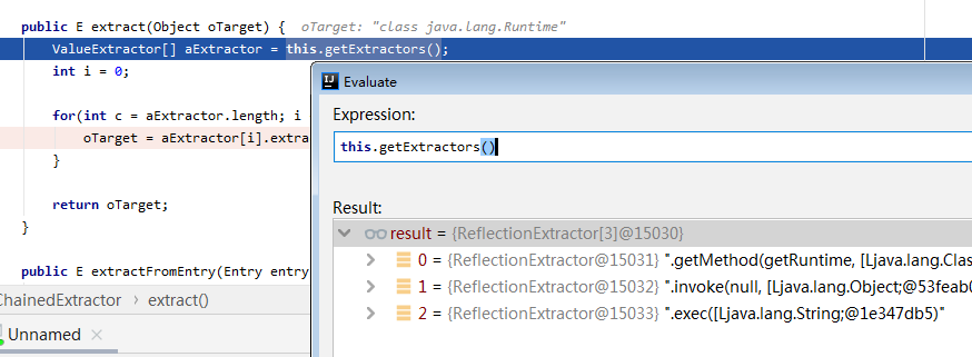 进入第0个extractor的extract,从这里不难看出为什么oTarget要是个java.lang.Runtime,