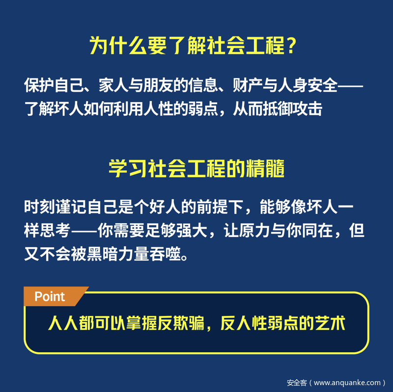 既然社会工程学是这样一门科学,那么,发表关于社会工程学的内容,是不是很容易被坏人利用呢?《社会工程:安全体系中的人性漏洞》一书作者 Christopher Hadnagy 这样解释。