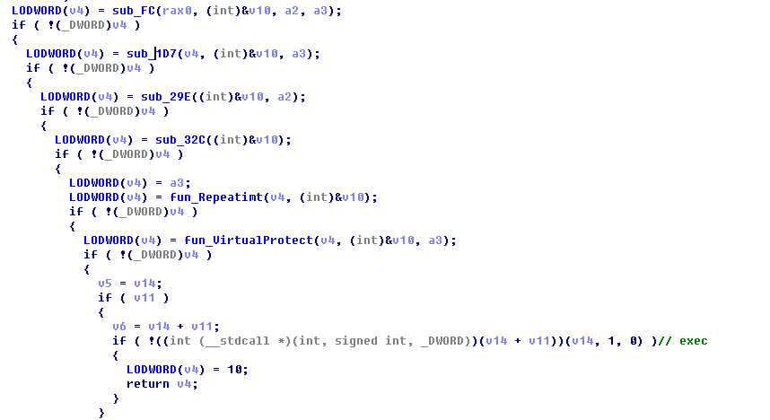 之后该恶意PE文件被重新拷贝到一段申请的内存中修复导入表并执行: