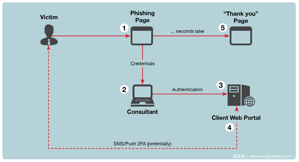 虽然安全专家极力推荐在个人及商业应用程序中使用2FA解决方案,但其实这种方案并非完美无缺。攻击者已经通过实时钓鱼(real-time phishing)技术突破了2FA的防线。在这些钓鱼攻击中,攻击者需要与受害者实时交互。