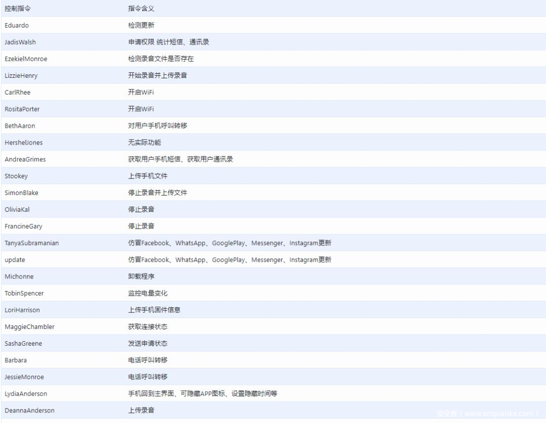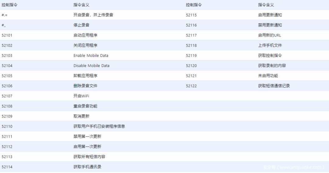 Anubis木马功能强大,自身结合了钓鱼、远控、勒索木马的功能。Anubis通过仿冒各种应用诱骗用户安装使用,当软件被激活后,会展现给用户一个仿冒的钓鱼页面,从而获取用户敏感信息,如银行账号密码、个人身份信息等。Anubis具备一般银行木马的功能,包括屏蔽用户短信,获取转发用户短信等功能。Anubis同时可以从服务端获取远控指令,对用户手机进行进一步控制。Anubis还是第一个集成勒索软件功能的Android银行木马。Anubis功能之多、之强大,甚至可以作为间谍软件进行使用。