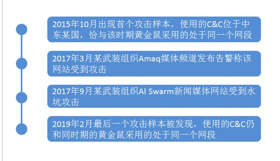 从2015年7月起至今,军刀狮组织(APT-C-38)在中东地区展开了有组织、有计划、针对性的不间断攻击。其攻击平台为Windows和Android,2018年5月,Kaspersky安全厂商发表报告《Who’s who in the Zoo》,首次批露该组织为一个未归属的专注于中东目标的间谍活动组织,并命名ZooPark,涉及的攻击武器共包含四个迭代版本的Android端RAT,载荷投递方式包括水坑和Telegram频道。