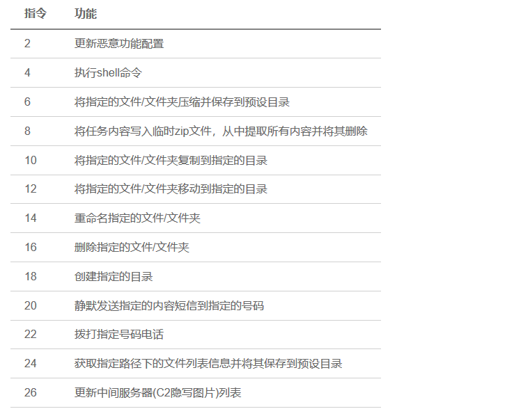 当用户安装该系列应用程序后,它会从被黑客入侵的web服务器中下载伪装的恶意插件,而该恶意插件又会进一步进行恶意行为包括:从服务器接收控制指令进行远控、伪装Google进行钓鱼、搜索用户手机与军事政治有关的文件等。