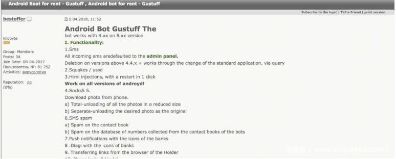 Gustuff在俄语的网络犯罪分子论坛上做广告: