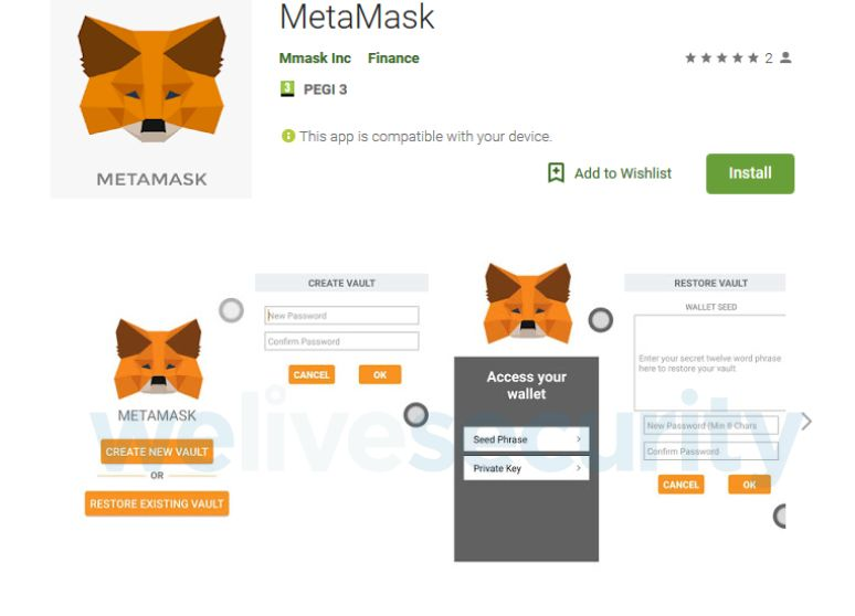 2019年2月8日,ESET在Google Play上发现了利用剪辑器窃取加密货币的恶意软件,该恶意软件冒充为MetaMask合法服务,恶意软件的主要目的是窃取受害者的凭据和私钥,以控制受害者的以太坊资金。但是,它也可以用属于攻击者的地址替换复制到剪贴板的比特币或以太币钱包地址。