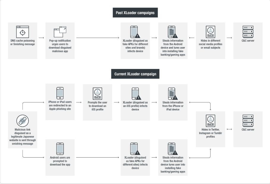 2019年4月2日,趋势科技研究人员发现了XLoader的一种新的变体,这款新的XLoader变体是Android设备的安全应用程序,使用恶意iOS配置文件来影响iPhone和iPad设备。除了部署技术的改变之外,其代码中的一些变化使其与以前的版本不同。这个最新的变种被命名为XLoader 6.0版。