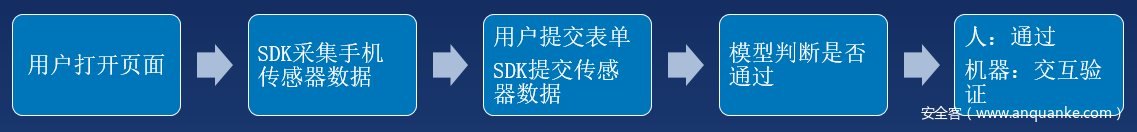 既然验证码又不能防机器,又阻碍了正常用户,那是否有更加用户友好的手段可以代替验证码呢?这里我们引入了人机识别,采用手机传感器在用户无感知的情况下完成人机区分。