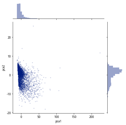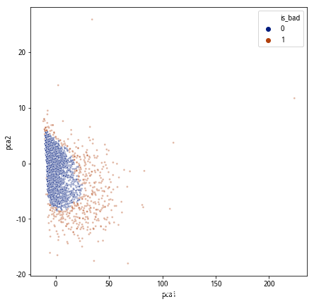 考虑到无标签和坏人的“主动性”,我们可以选择无监督的异常发现模型来区分异常。这其中孤立森林模型算是效果较好的了。它可以达到如下效果: