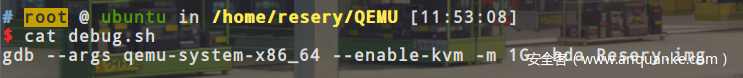 gdb --args x86_64-softmmu/qemu-system-x86_64 --enable-kvm -m 1G -hda Resery.img -vnv :0 -smp4