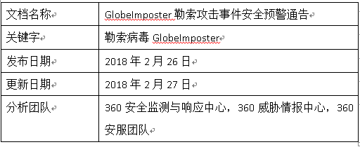 近日,国内某机构遭受 GlobeImposter勒索病毒攻击,导致业务相关文件被加密,对业务的连续性造成严重影响。360安全监测与响应中心、360 威胁情报中心、360安服团队对此事件进行了紧密跟踪与分析,认为本次事件不同于普通的勒索病毒事件。