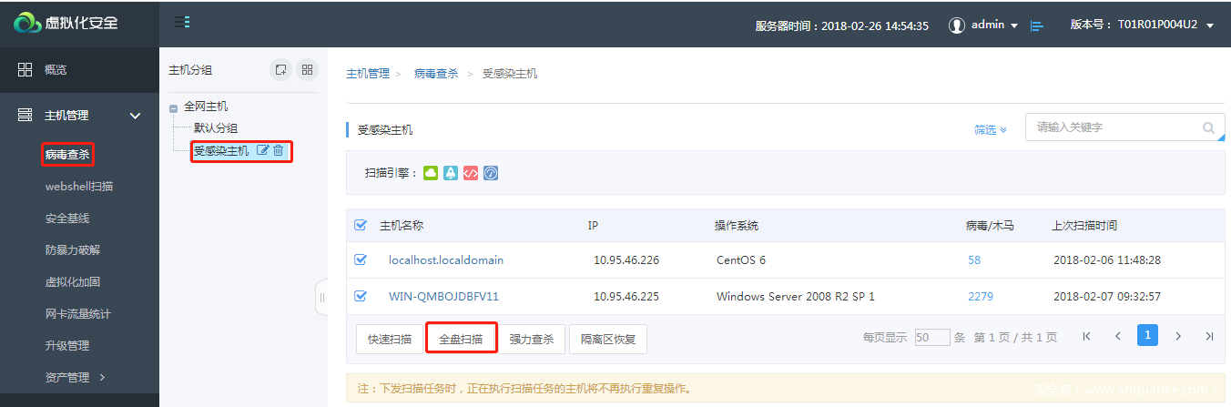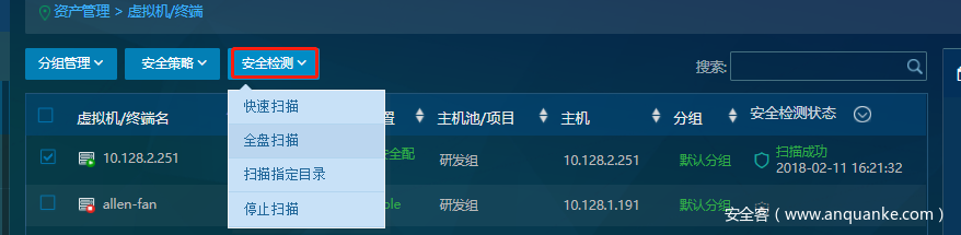 定期扫描,预防风险:建议选择在空余时间如下班等业务流量较少的时段对虚拟机进行全盘扫描。