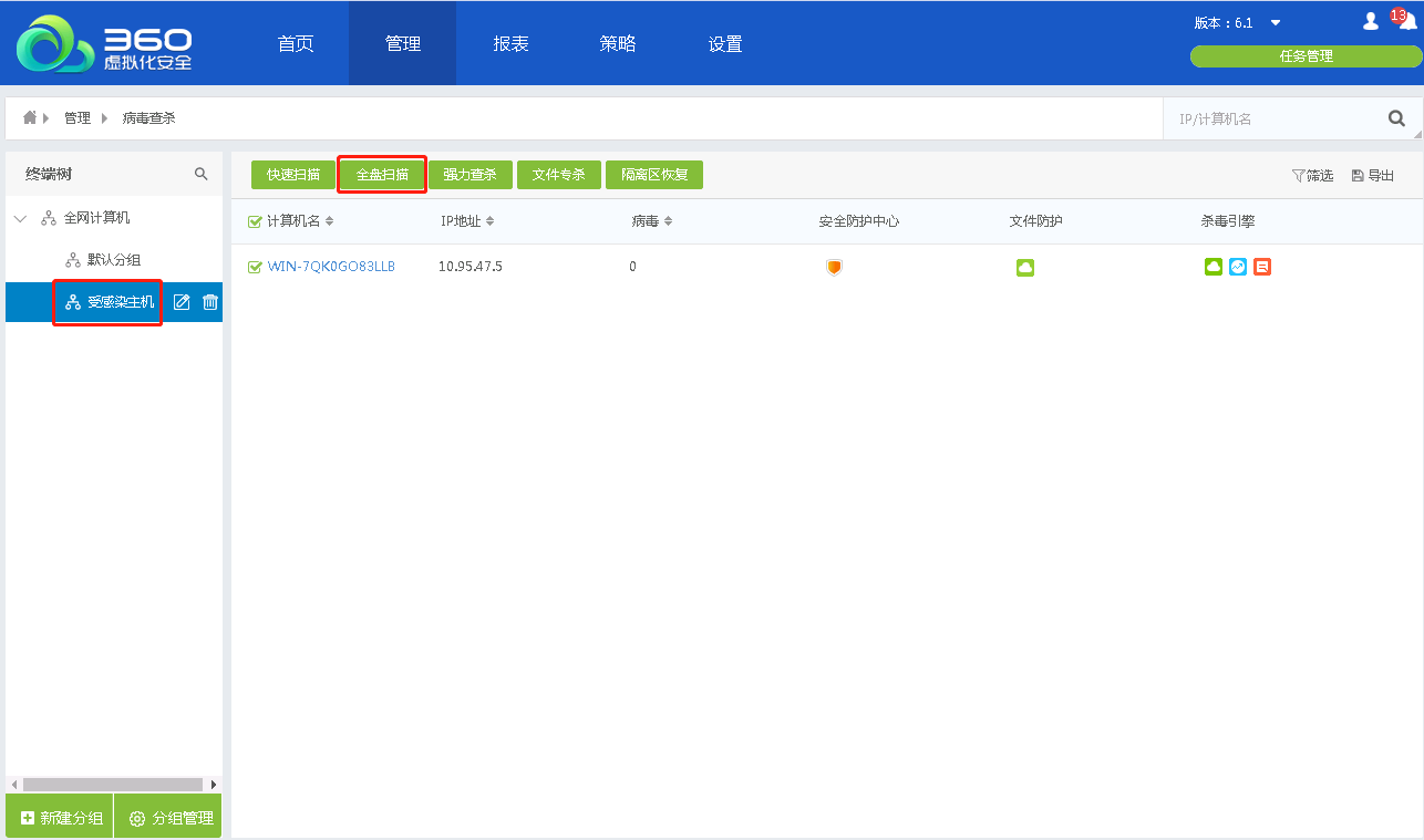 - 对已感染设备下发全盘扫描任务