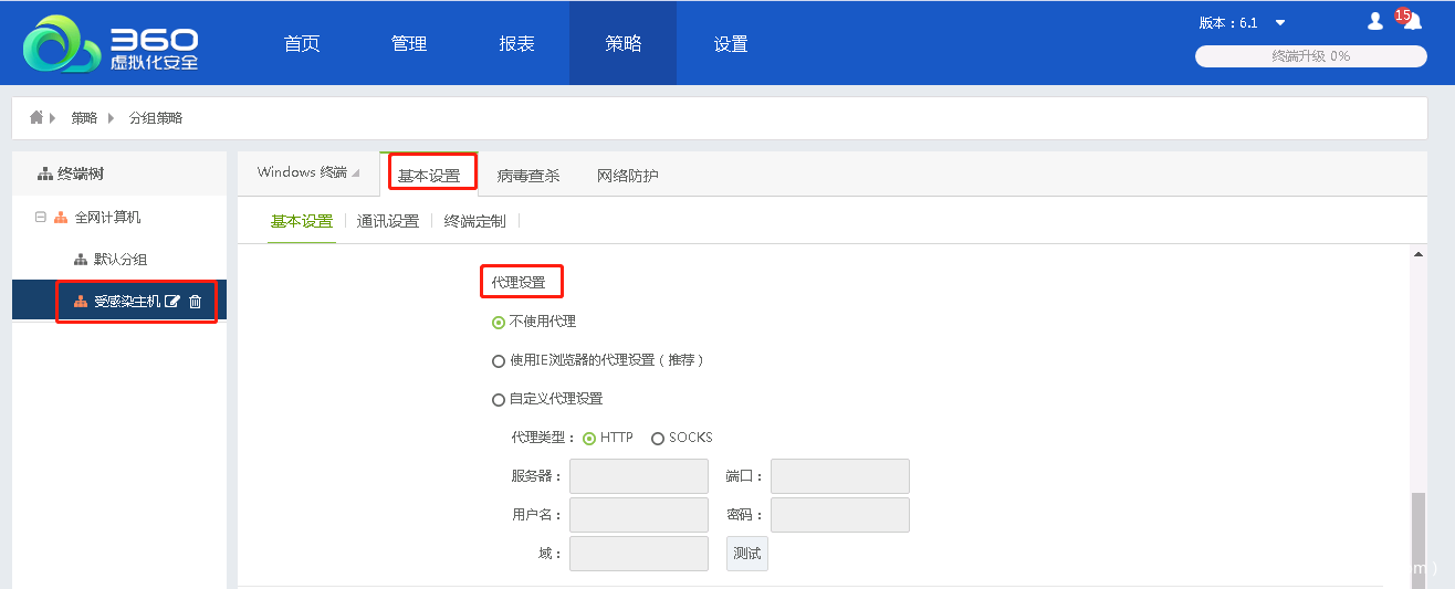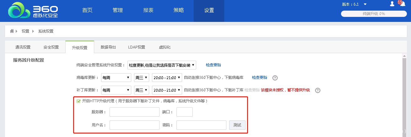 场景二:当终端无法连接公网时,可配置代理服务器升级终端病毒库版本