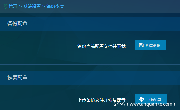 支持上传备份文件并恢复配置,恢复过程中会重启管理中心相关进程.