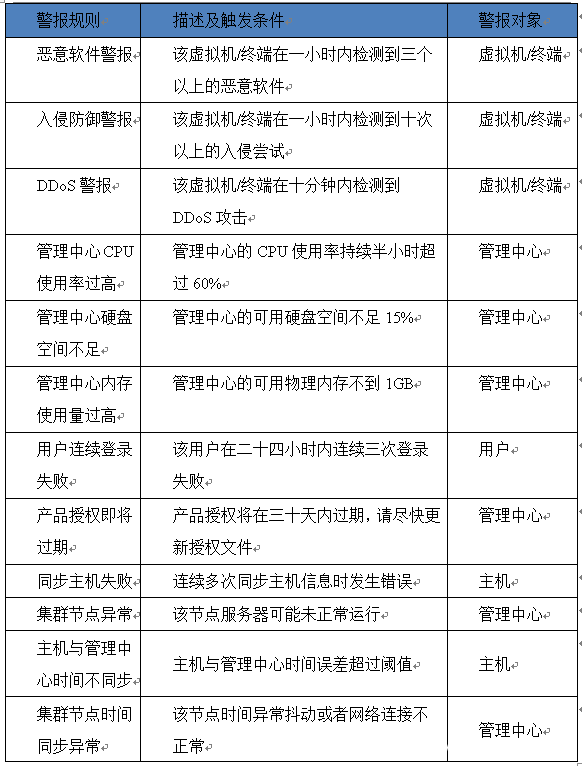 2、结合虚拟化安全防护系统对全网主机进行安全评估(包括弱口令检测、漏洞检测、病毒扫描、系统配置脆弱性检测等);