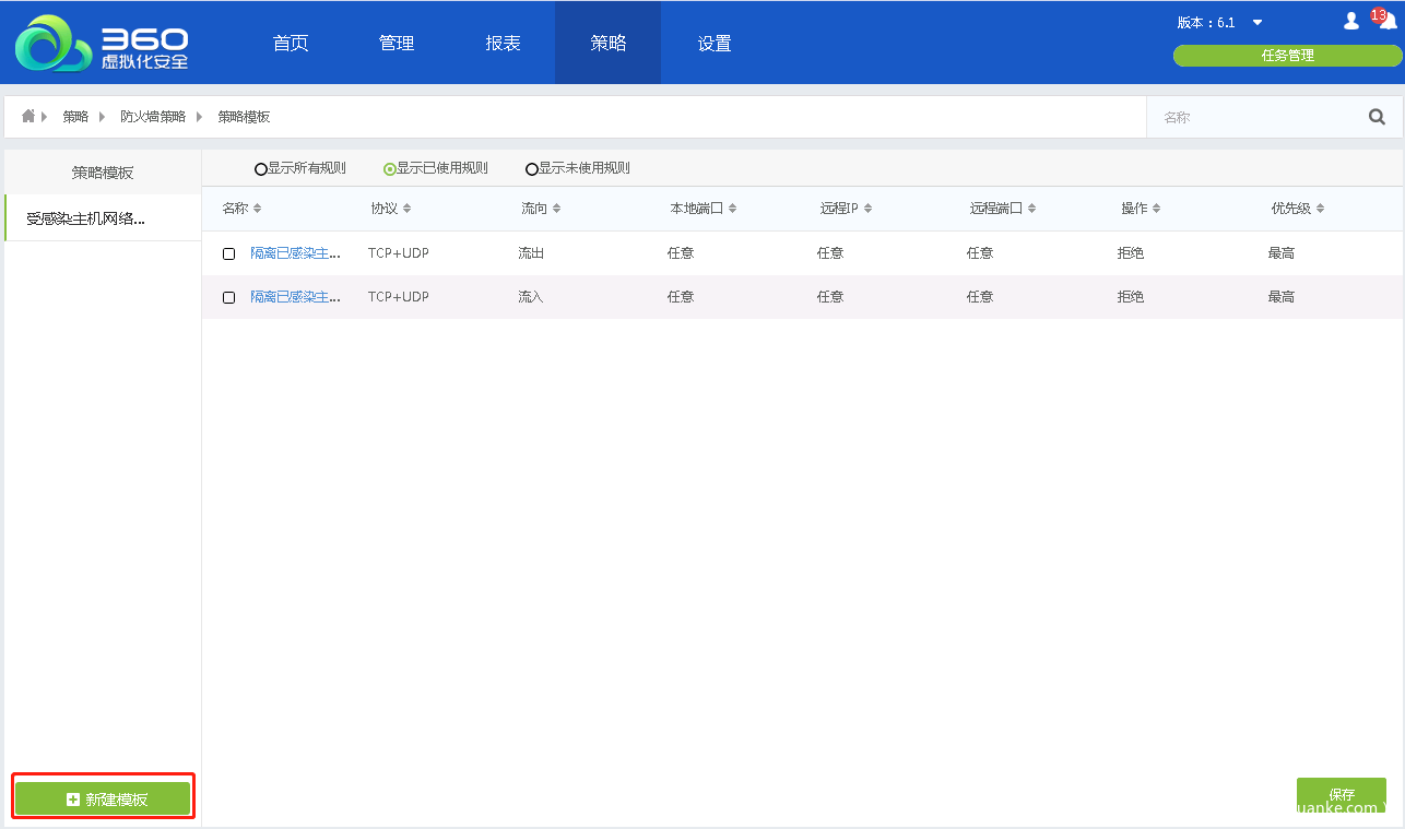 - 编辑防火墙策略模板