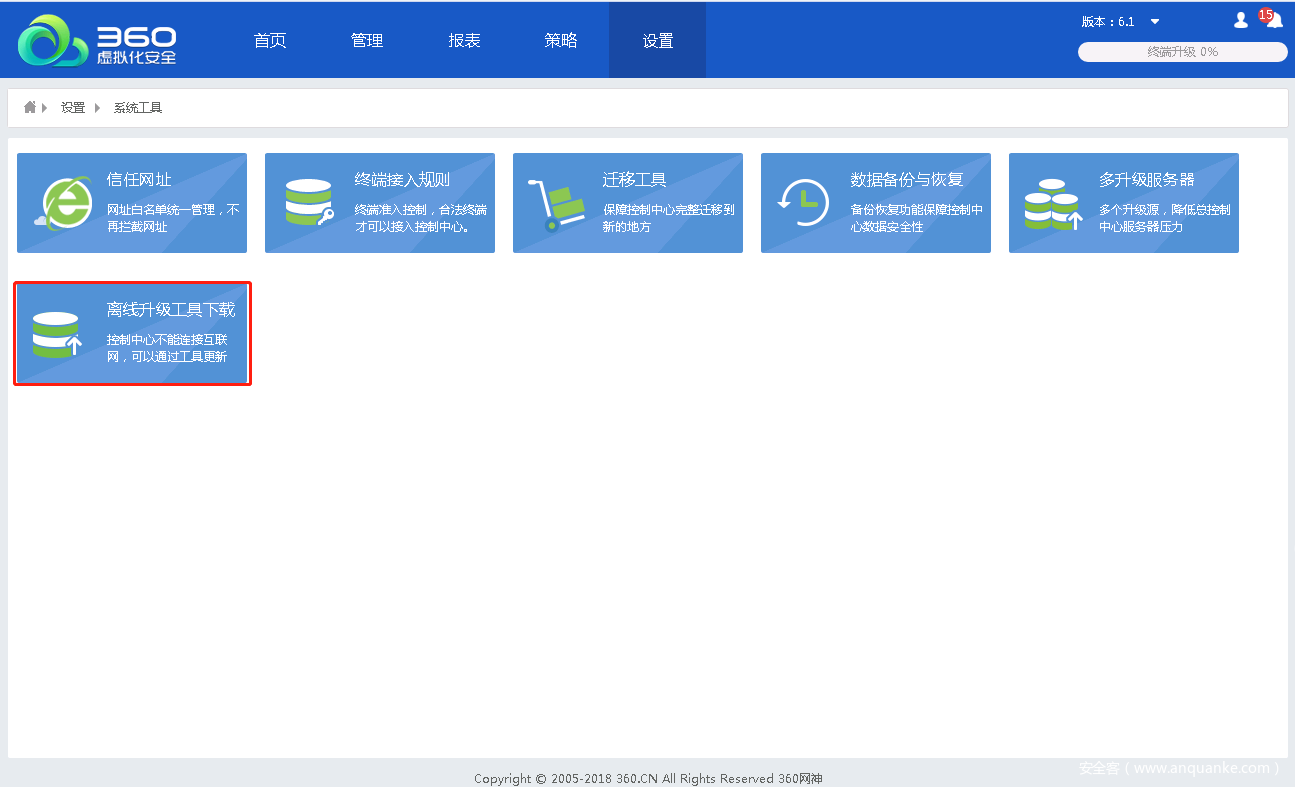 同时,针对纯隔离网环境,可以通过隔离网工具升级控制台病毒库版本。