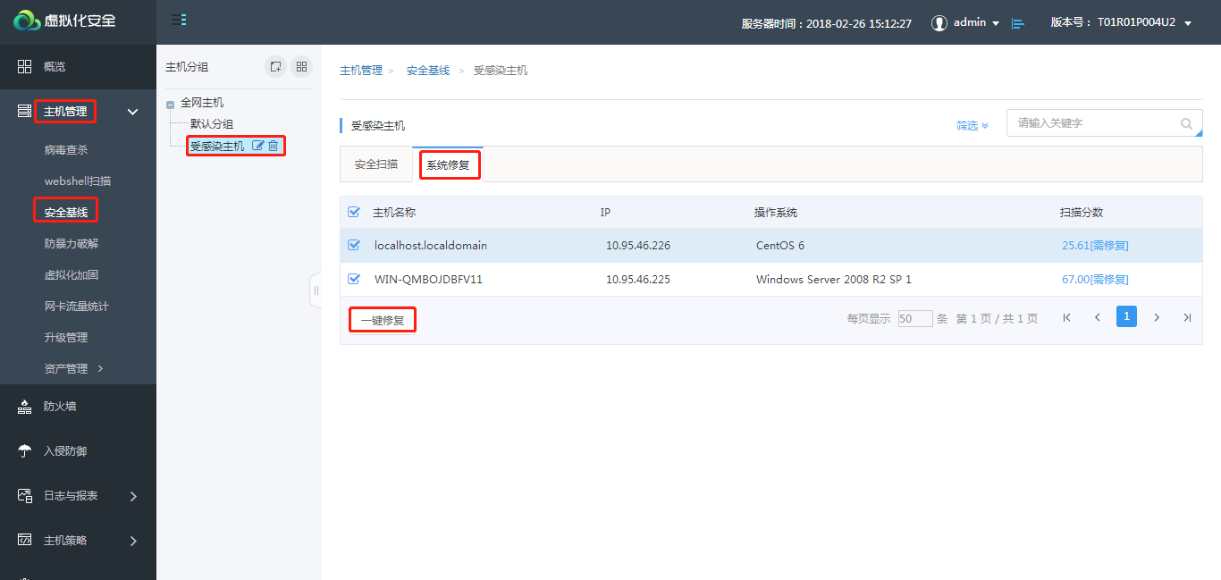 - 扫描完成后针对受感染分组主机进行系统修复