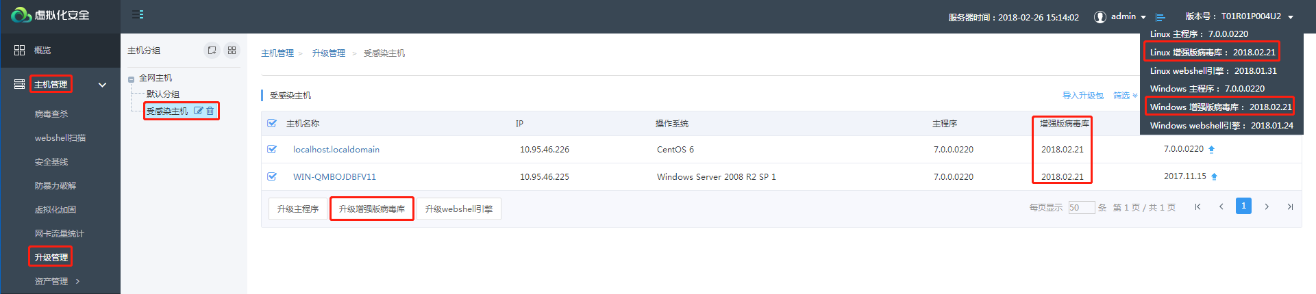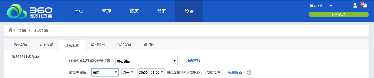 配置方法:使用虚拟化安全(轻代理)升级管理及升级设置功能