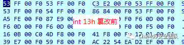 0:0x4c这个地址正是int 13h中断服务函数地址,篡改后的地址为0x97400012
