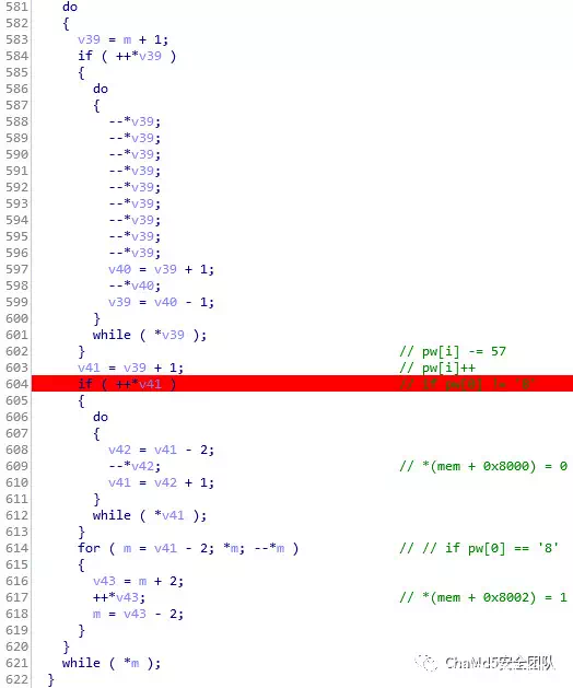 如比较值为0xc8,正确输入时应为0x00,则意味着该位password实际应该为(char) (0x00-0xc8),即’8’