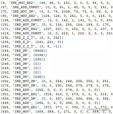 然后将简单指令组合成复合指令,复合指令一般会以基础指令的固定组合重复多次,并且意义明显,如mov或者跳转操作