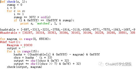 其中magicsum是所有密码的ascii和加3072乘密码长度