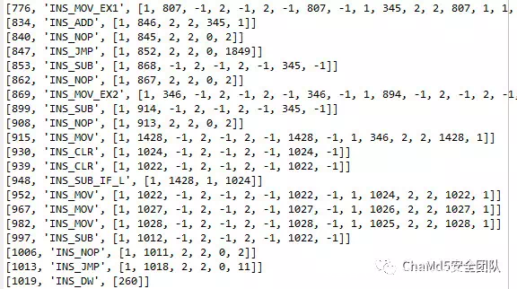 当然这个是由本题的编译器定义的,并不一定通用,类似subleq反汇编器一样,合并基础指令为复合指令如下