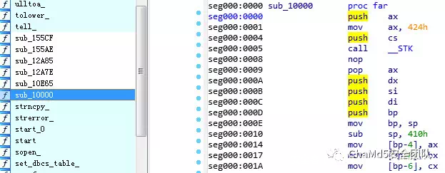 程序由16位Watcoom编译,使用对应的watcom编译带调试符号的库,并制作FLIRT signature的签名文件,ida识别出大部分函数