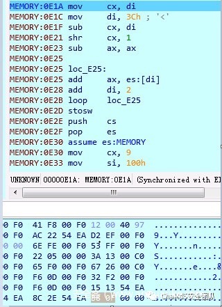 篡改的mbr加载了tmp.dat中的函数,对0:0x4c地址的数据进行改写了,然后解码恢复原版mbr继续运行